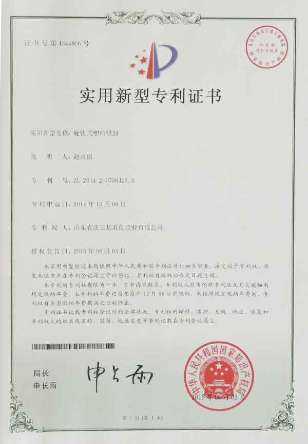 旋钮式塑料铅封-实用新型专利